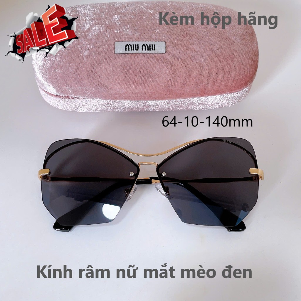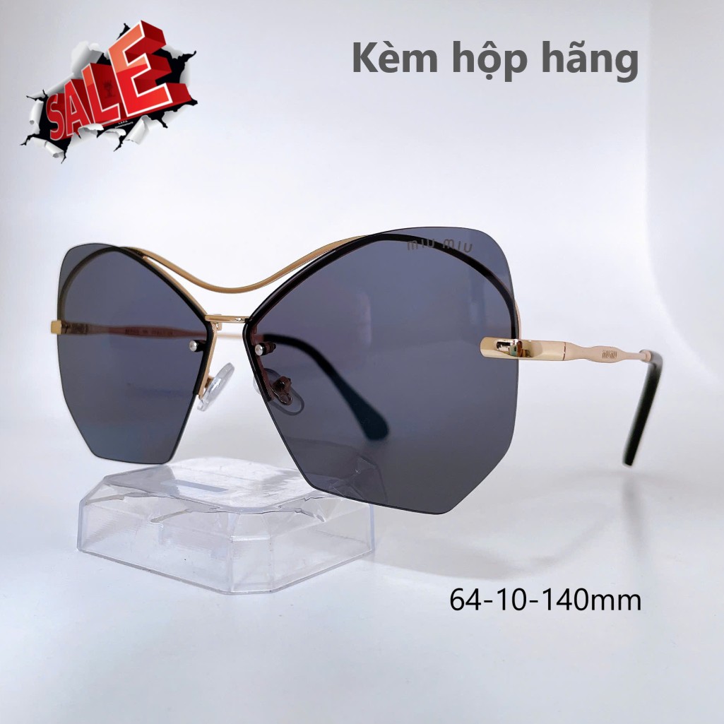 Mắt kính thời trang nữ - Kính mát nữ màu trà tròng vuông viền kim loại cao cấp kèm hộp