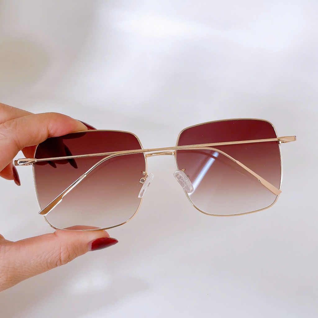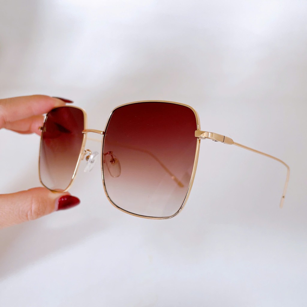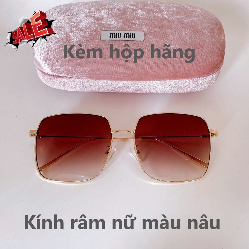 Mắt kính thời trang nữ - Kính mát nữ màu nâu vuông viền kim loại cao cấp kèm hộp