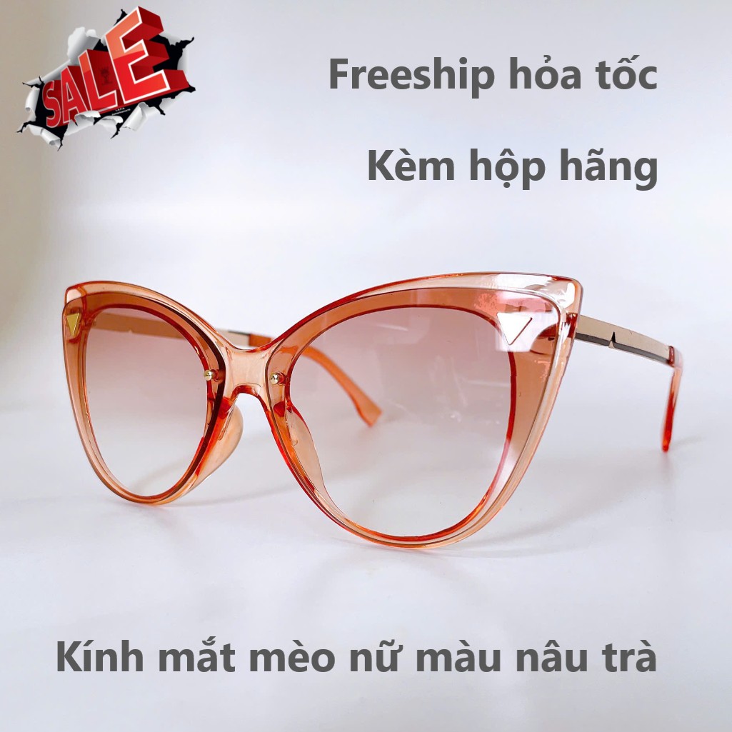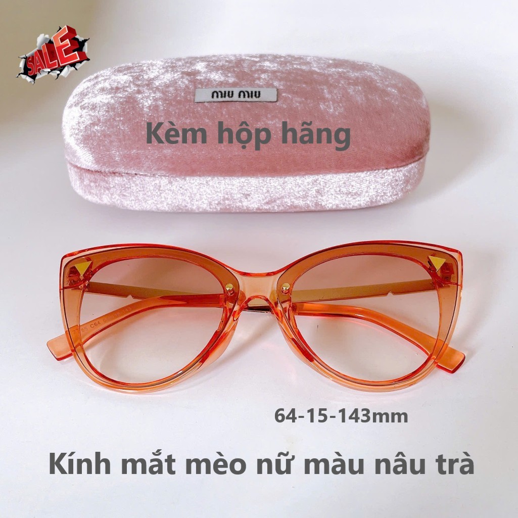 Mắt kính thời trang nữ - Kính mát nữ Miu Miu màu nâu trà mắt mèo gọng kim loại cao cấp kèm hộp - mã 2755