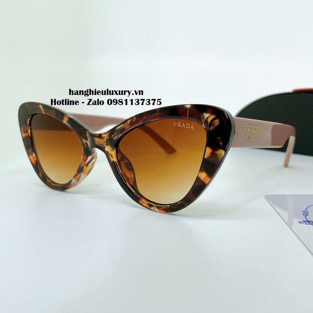 - Kính Mát Prada màu nâu beo, dáng kính mắt mèo có khả năng hỗ trợ loại bỏ ánh sáng chói, tăng cường độ tương phản, đồng thời chiếc mắt kính này còn giảm độ căng thẳng cho mắt, đặc biệt khi đi ngoài trời nắng nóng.