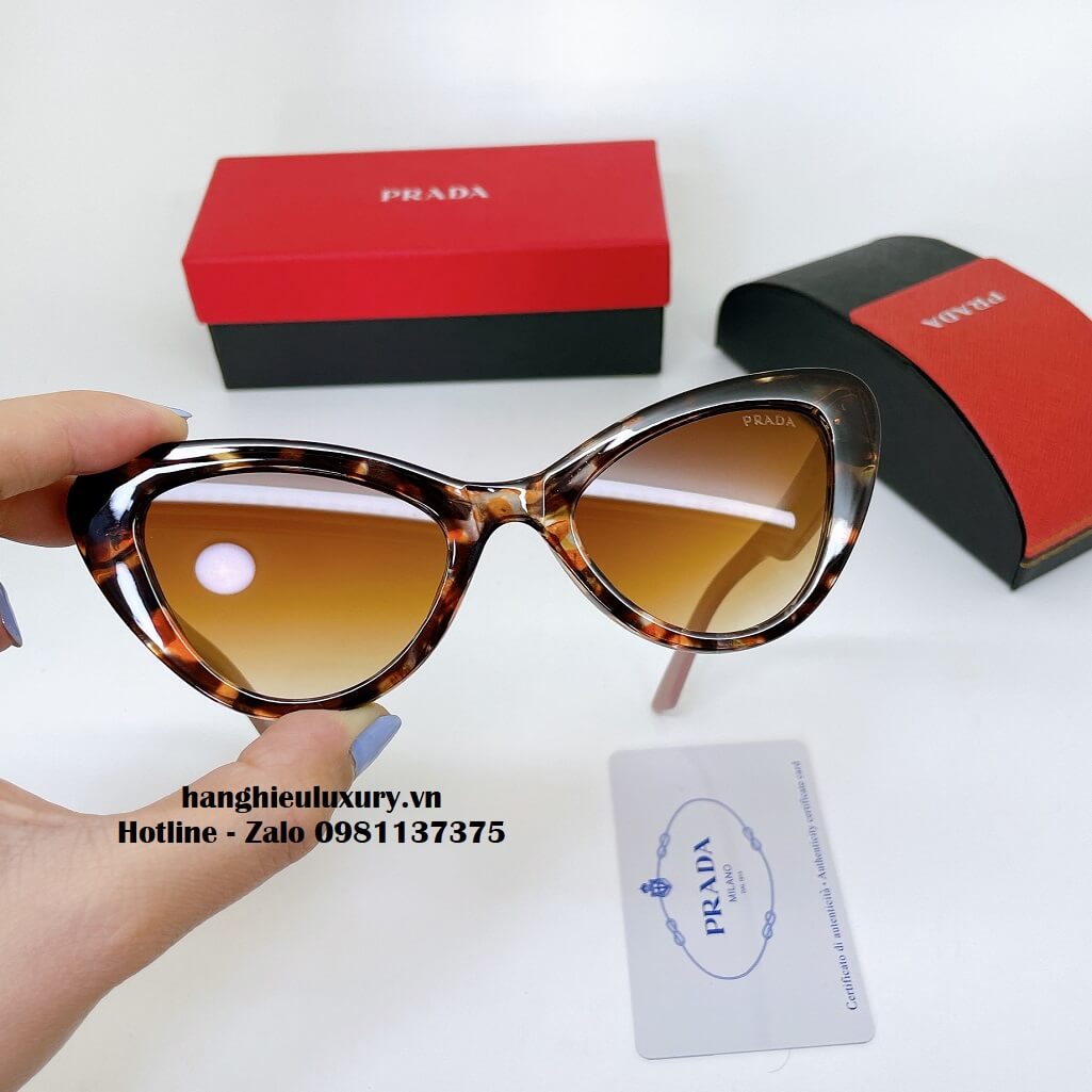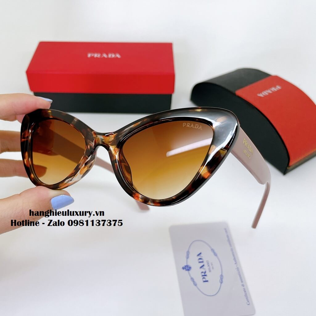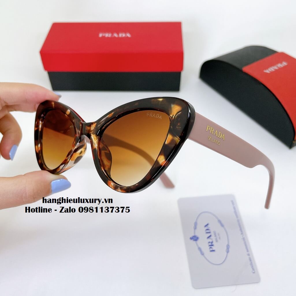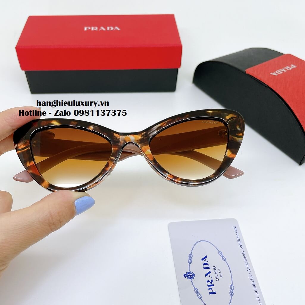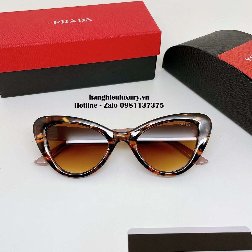 Mô tả Kính Mát Prada Nữ Màu Nâu Beo Mắt Mèo Cao Cấp Full Box 20265