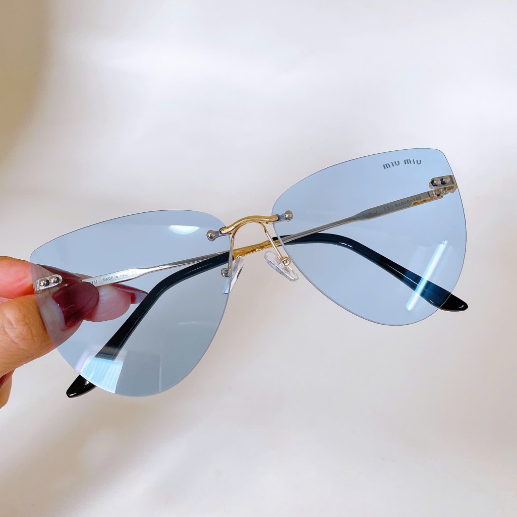 Điểm nổi bật của sản phẩm Kính râm nữ màu xanh dương - Kính Miu Miu mắt mèo nữ nhẹ gọng kim loại kèm hộp