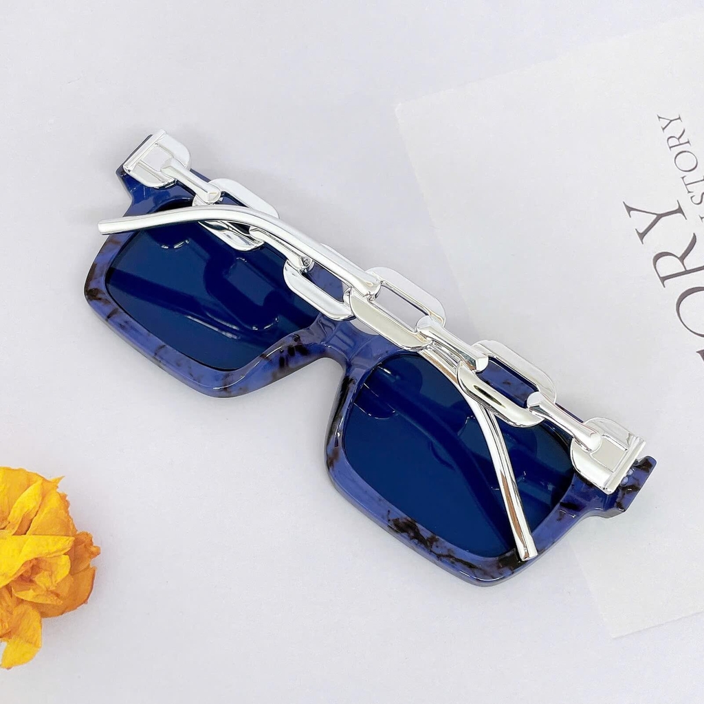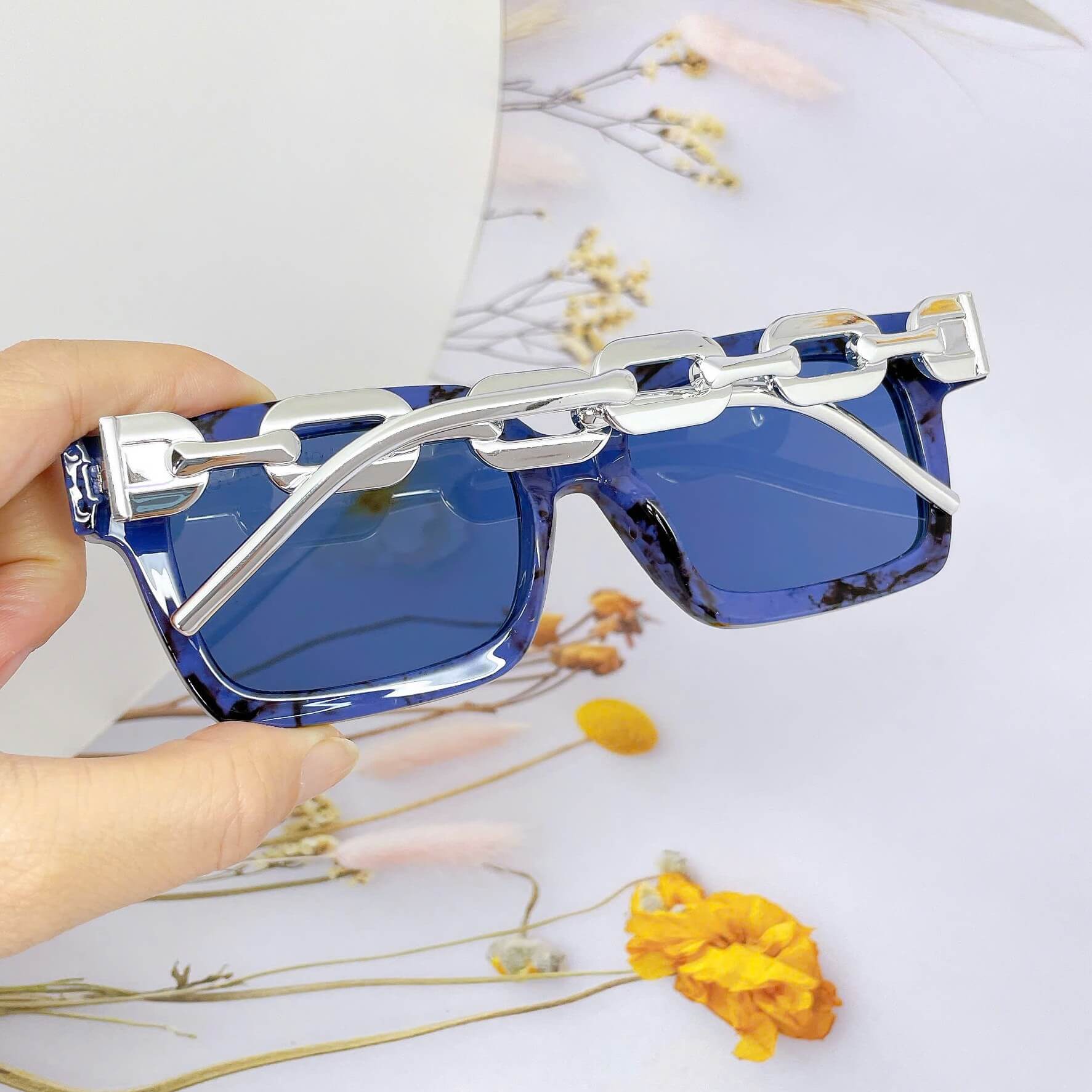 Hiện đại – nổi bật – chuẩn phong cách high-fashion, Kính Louis Vuitton Nữ Vuông Xanh Gọng Kim Loại Mắc Xích Silver là mẫu kính dành cho nàng yêu thích sự khác biệt và đẳng cấp.